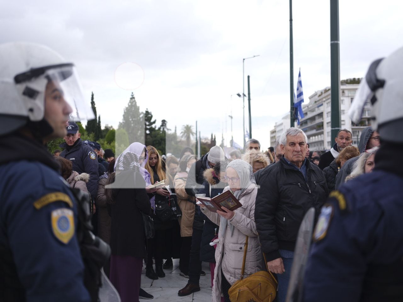 Συγκεκριμένα, πολίτες, που εναντιώνονται στο υπό ψήφιση νομοσχέδιο συγκεντρώθηκαν στην πλατεία Συντάγματος κρατώντας στα χέρια σταυρούς, εικόνες αλλά και πλακάτ με σύνθημα πατρίδα – θρησκεία – οικογένεια, διαβάζοντας Αγία Γραφή και… θυμιατίζοντας.