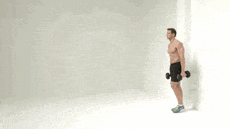 Με τους αλτήρες στο ύψος των ισχίων και κοντά στο σώμα, κάνεις ένα ευρύ βήμα εμπρός ώσπου το πίσω γόνατο ακουμπήσει το πάτωμα και επιστρέφεις, αλλάζοντας πόδι προβολής. Καθ’ όλη τη διάρκεια της κίνησης, η σπονδυλική στήλη παραμένει ευθεία.