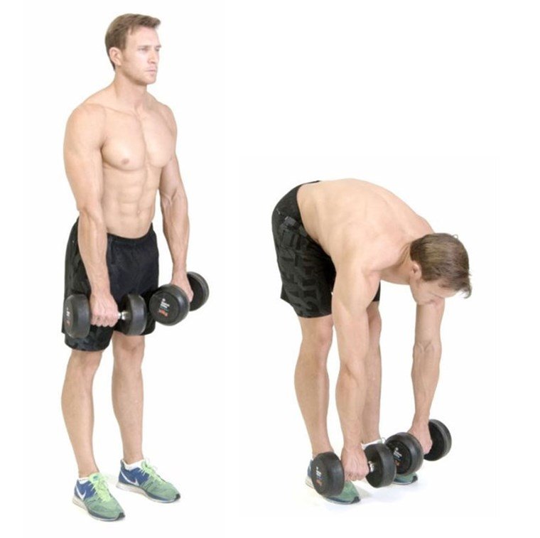 Στέκεσαι όρθιος με την σπονδυλική στήλη ευθεία, τον πυρήνα ενεργοποιημένο και τα γόνατα κλειδωμένα, βαστώντας τους αλτήρες μπροστά από το σώμα. Λυγίζεις τη μέση προσπαθώντας να φέρεις τους αλτήρες να ακουμπήσουν το έδαφος, χωρίς να λυγίσεις τα γόνατα.