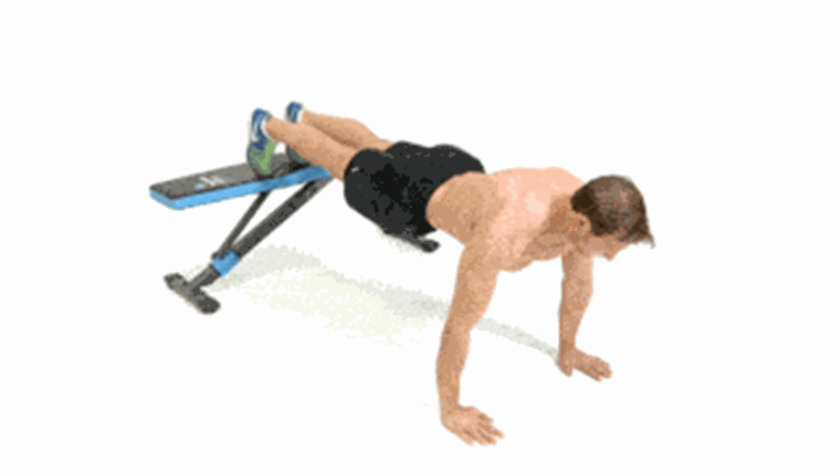 Με τις μύτες στηριγμένες στον πάγκο, εκτελείς push ups επιχειρώντας να φτάνεις το πηγούνι κοντά στο πάτωμα.