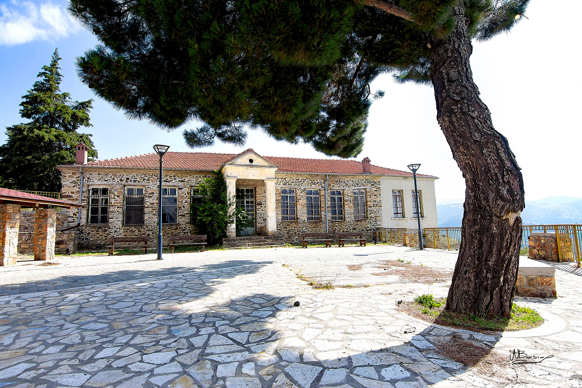 Ο φακός του Νίκου Μπασιά δεν καταγράφει απλώς κτίρια· αιχμαλωτίζει την ψυχή τους. Καταγράφει ένα κομμάτι της παιδικής ηλικίας ενός τόπου ολόκληρου. Εκεί όπου η κιμωλία άφηνε σημάδια όχι μόνο στον πίνακα αλλά και στο χρόνο.