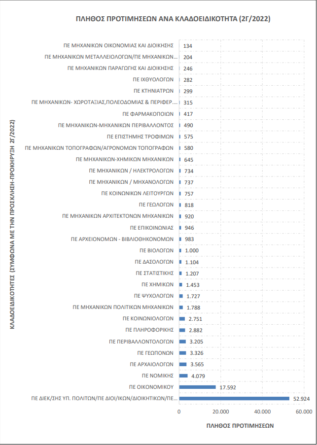 Οι προτιμήσεις των υποψηφίων ανά κλάδο και ειδικότητα