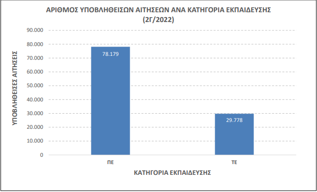 Η συμμετοχή στον διαγωνισμό του ΑΣΕΠ είναι μεγάλη και συνολικά υποβλήθηκαν 107.957 αιτήσεις (78.179 αιτήσεις Πανεπιστημιακής Εκπαίδευσης και 29.778 αιτήσεις Τεχνολογικής Εκπαίδευσης).