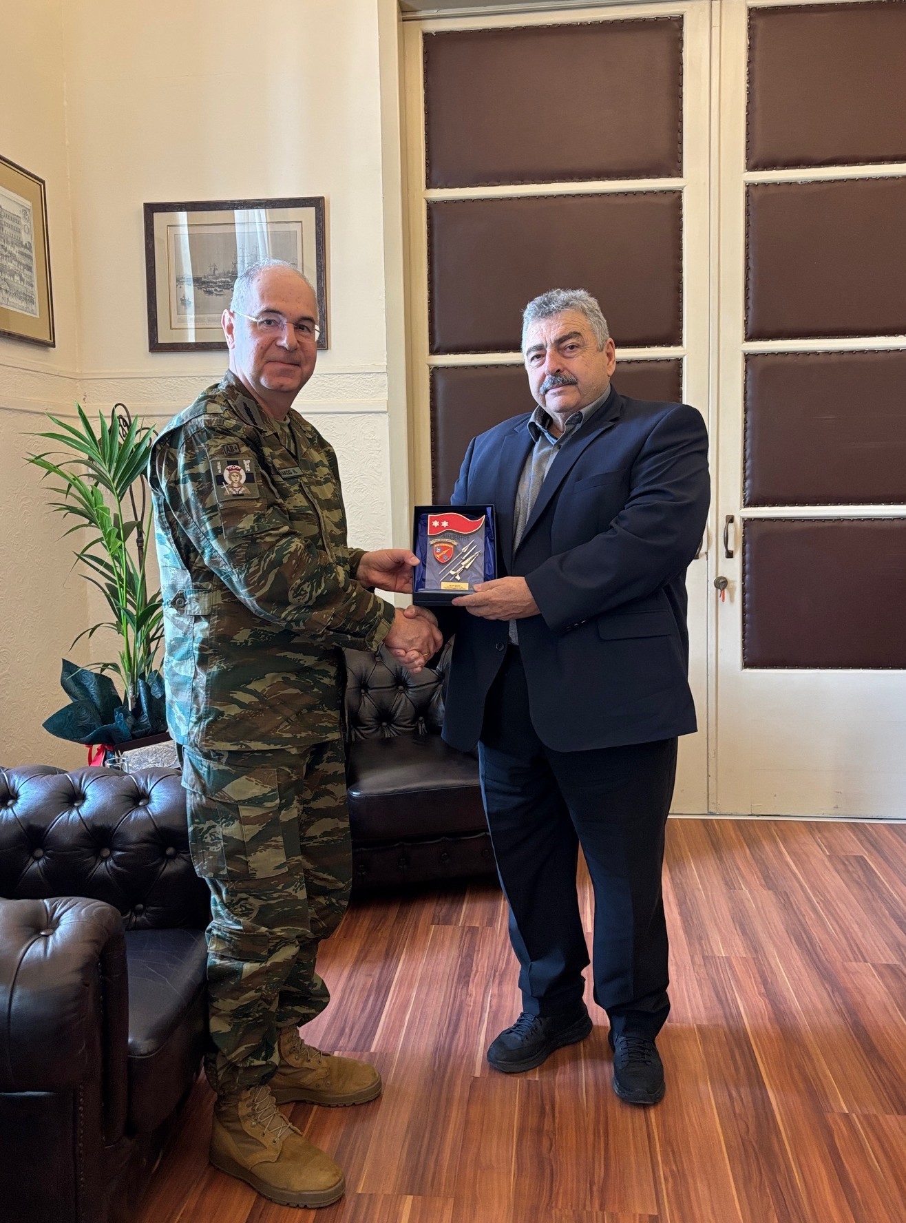 Εθιμοτυπική επίσκεψη στον Αντιπεριφερειάρχη Χανίων Νίκο Καλογερή πραγματοποίησε σήμερα, Τρίτη 4 Φεβρουαρίου 2026, ο νέος Διοικητής του Πεδίου Βολής Κρήτης Υποστράτηγος Νικόλαος Δημητράκος.