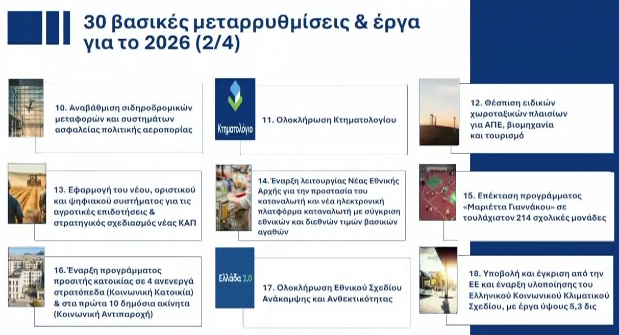 Επιπλέον ο κ. Χατζηδάκης παρουσίασε και 30 βασικές μεταρρυθμίσεις και έργα που θα πραγματοποιηθούν το 2026https://www.ertnews.gr/