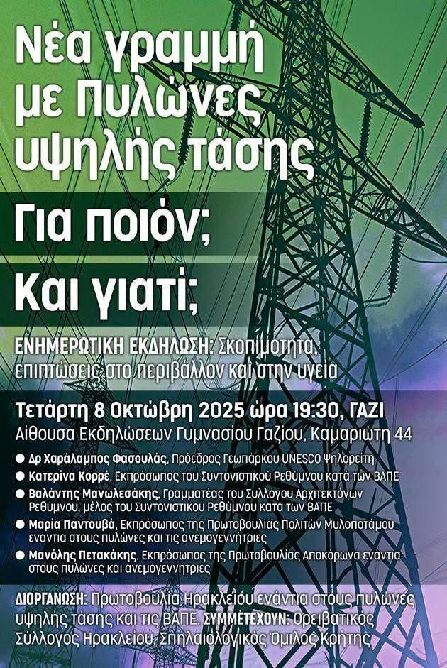 Ενημερωτική εκδήλωση του Σπηλαιολογικού Ομίλου Κρήτης σχετικά με το έργο μεταφοράς ηλεκτρικής ενέργειας υψηλής τάσης στην Κρήτη