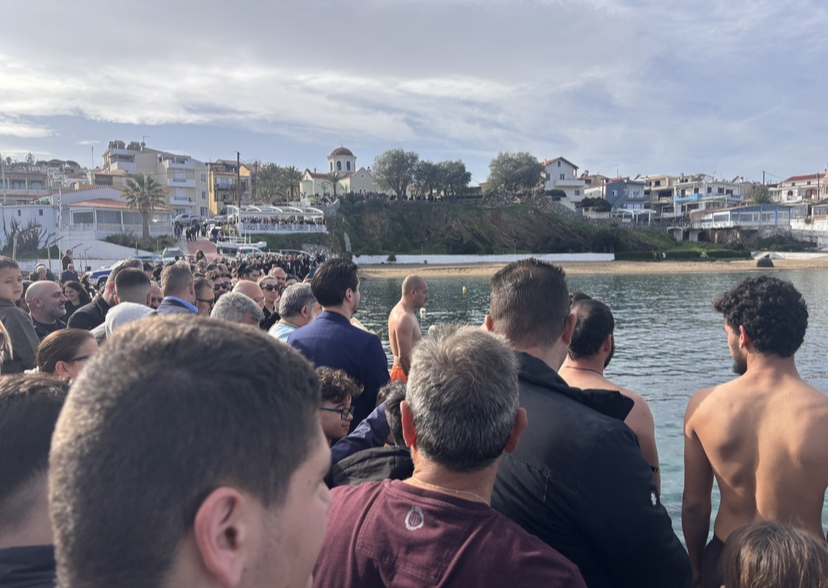 Ακολούθησε ο Αγιασμός των Υδάτων στο λιμάνι του Πανόρμου, σε κλίμα ευλάβειας, με πλήθος κόσμου να παρακολουθεί τη ρίψη του Τιμίου Σταυρού και τους κολυμβητές να βουτούν στα χειμωνιάτικα νερά για την ευλογία της ημέρας.