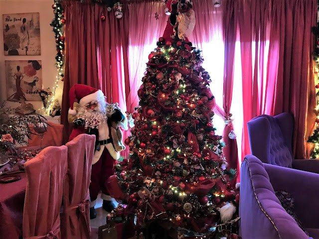 Από το χαλί της εισόδου μέχρι και ντουλάπια της κουζίνας η ένοικος του σπιτιού έχει στολίσει τα πάντα με πολύχρωμες μπάλες, γιρλάντες, άγιους Βασίληδες, δεντράκια, μαξιλαράκια και ότι άλλο μπορεί κανείς να φανταστεί πως κυκλοφορεί στην αγορά σε στολίδι.