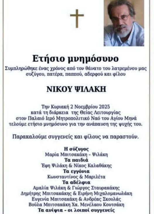 Πριν ένα χρόνο, έφυγε από την ζωή (άλλα όχι από την μνήμη μας) ο δημοσιογράφος και συγγραφέας Νίκος Ψιλάκης, αφήνοντας μία τεράστια παρακαταθήκη με το σπουδαίο έργο του.