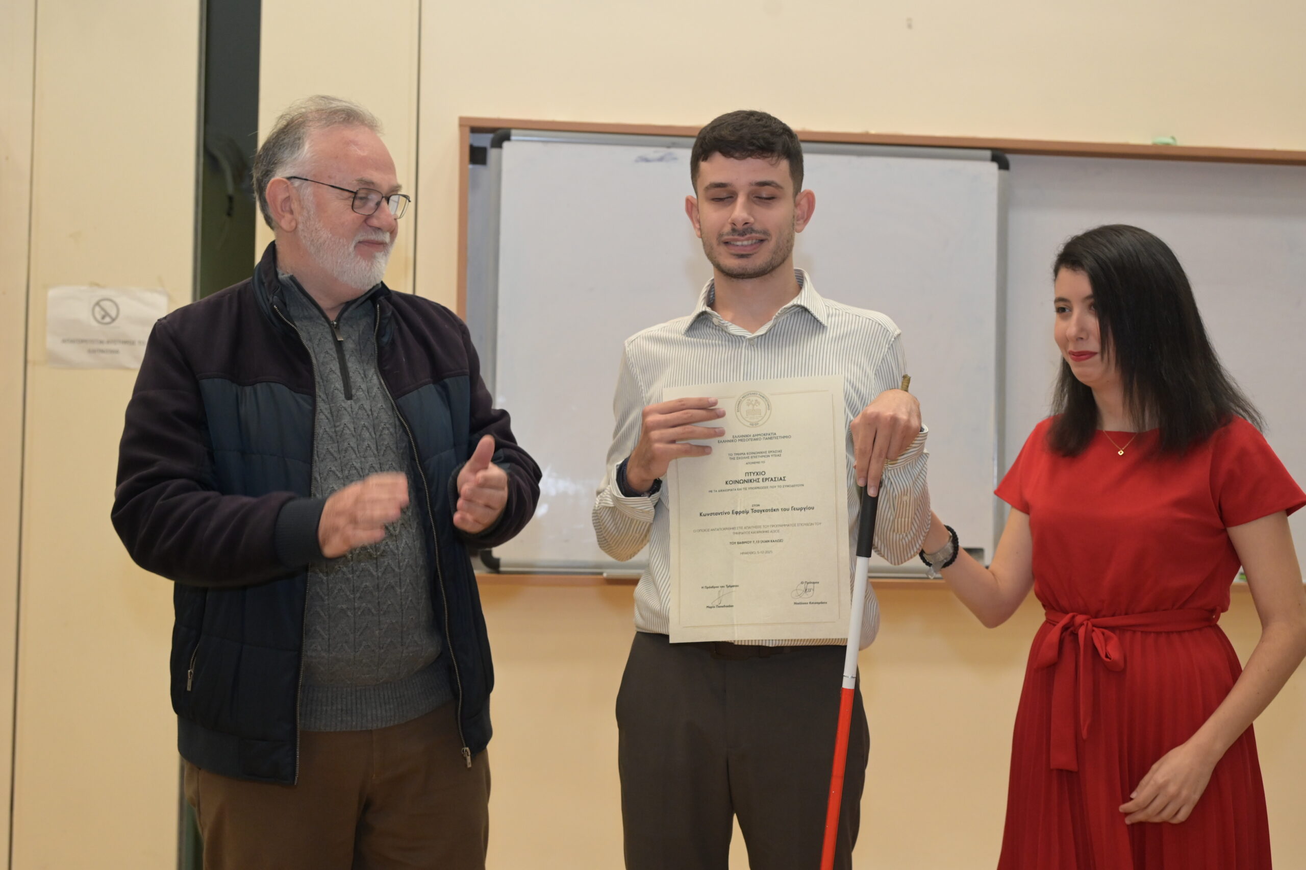 Η ορκωμοσία του Κωνσταντίνου-Εφραίμ Τσαγκατάκη αποτελεί έναν σταθμό για το Ίδρυμα, επιβεβαιώνοντας ότι η συμπεριληπτική εκπαίδευση είναι καθημερινή πράξη και όχι απλώς θεωρητική επιδίωξη. Απαιτεί δέσμευση, διεπιστημονική συνεργασία και ανθρώπινη ευαισθησία. Ο απόφοιτος εξέφρασε θερμά ευχαριστήρια στο προσωπικό των υπηρεσιών του Πανεπιστημίου και σε όλους όσους συνέβαλαν στη διαδρομή του, επιβεβαιώνοντας το μήνυμα ότι «κανένας φοιτητής δεν μένει μόνος».