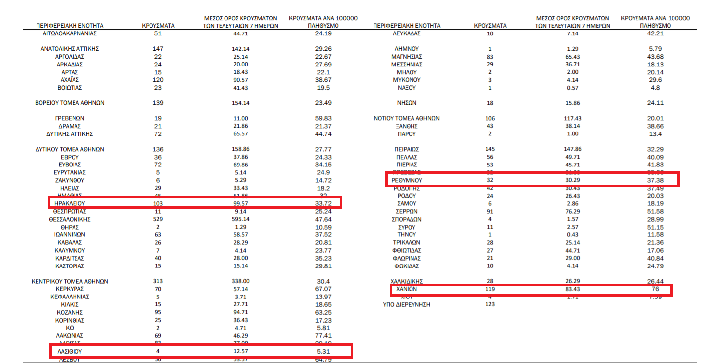 103 νέα κρούσματα εντοπίστηκαν στο Ηράκλειο