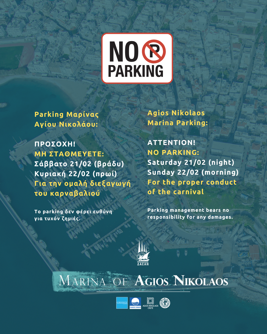 Παρακαλούμε μεριμνήστε έγκαιρα για τη μετακίνηση των οχημάτων σας.
