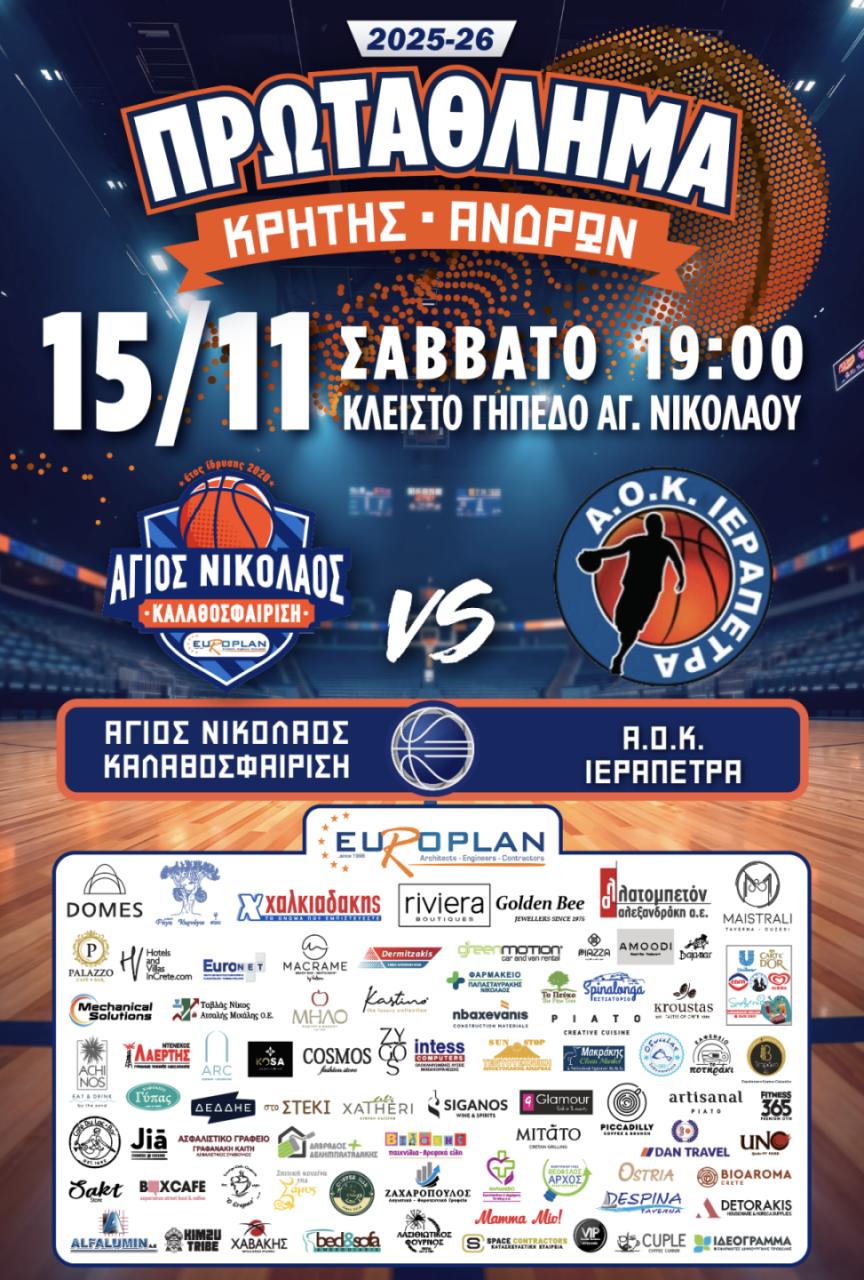 Ένα μπασκετικό διήμερο γεμάτο δράση περιμένει τα τμήματα του Αγίου Νικολάου Europlan, με το ενδιαφέρον να κορυφώνεται το Σάββατο 15 Νοεμβρίου, στο μεγάλο Λασιθιώτικο ντέρμπι του Πρωταθλήματος Ανδρών Κρήτης