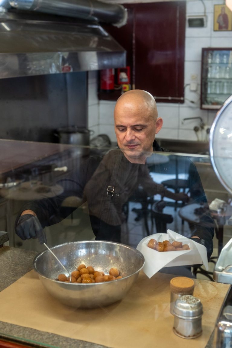 Τρίτης γενιάς τεχνίτης, μεγαλωμένος μέσα στις ζύμες, ανάμεσα σε καζάνια με καυτό λάδι από τη μία και λεκάνες με σιρόπι από την άλλη, ξέρει πολύ καλά ότι οι δικοί του λουκουμάδες «αποτελούν κατηγορία από μόνοι τους».
