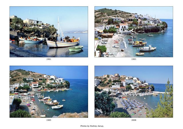 Οι ρυθμοί ζωής ήταν χαλαροί και το περιβάλλον σχεδόν παρθένο. Οι ψαράδες άραζαν τις βάρκες τους στο σημείο που σκάει το κύμα ενώ μπάλωναν τα δίκτυα τους και κουβέντιαζαν σε παρέες κάτω από τη σκιά των βράχων και των δέντρων.