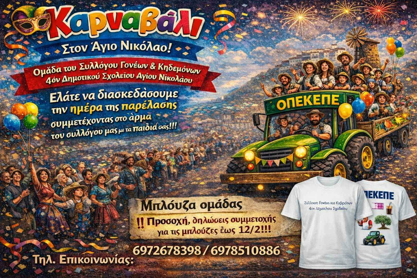 16 ημέρες απομένουν μέχρι την μεγάλη καρναβαλική παρέλαση στον Άγιο Νικόλαο που θα πραγματοποιηθεί την Κυριακή 22 Φεβρουαρίου 2026.