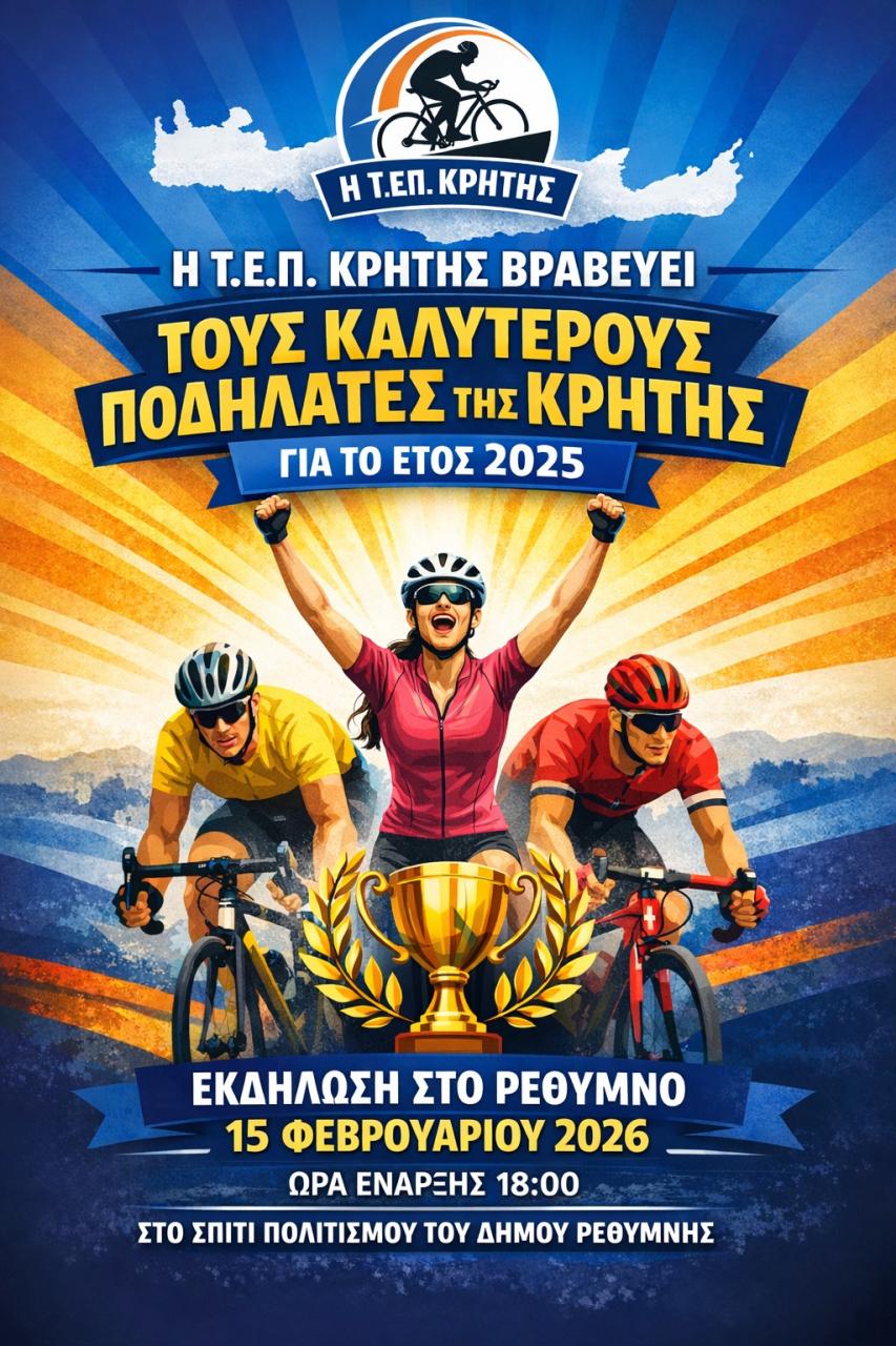 Tην τιμητική του είχε ο Δήμος Ρεθύμνης στην καθιερωμένη ετήσια γιορτή της Τοπικής Επιτροπής Ποδηλασίας Κρήτης, η οποία πραγματοποιήθηκε χθες, Κυριακή, 15 Φεβρουαρίου 2026, στο Σπίτι του Πολιτισμού.
