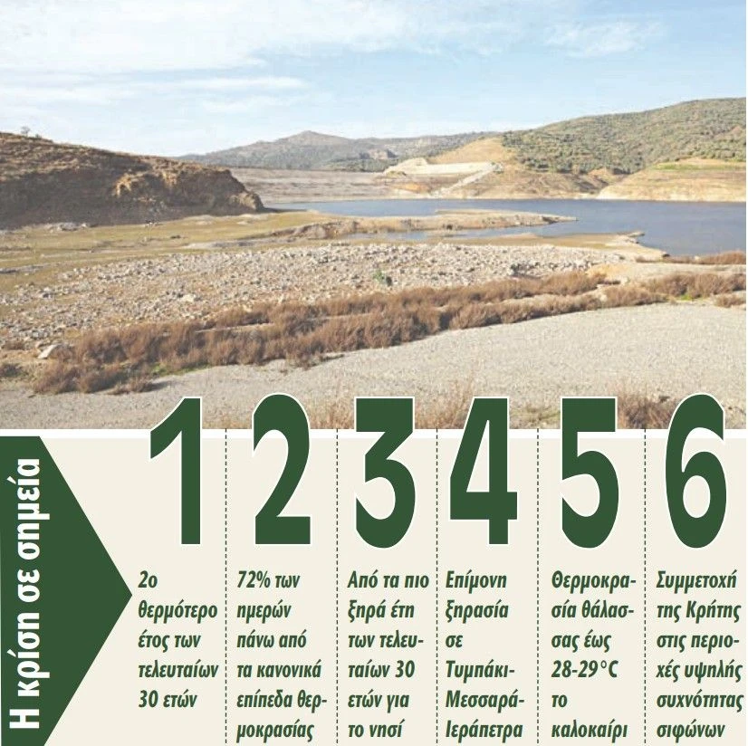 Ξηρασία, αυξημένες θερμοκρασίες, σιφώνες, υδροστρόβιλοι, πίεση στα υπόγεια νερά συνθέτουν την κλιματική εικόνα του νησιού το 2025