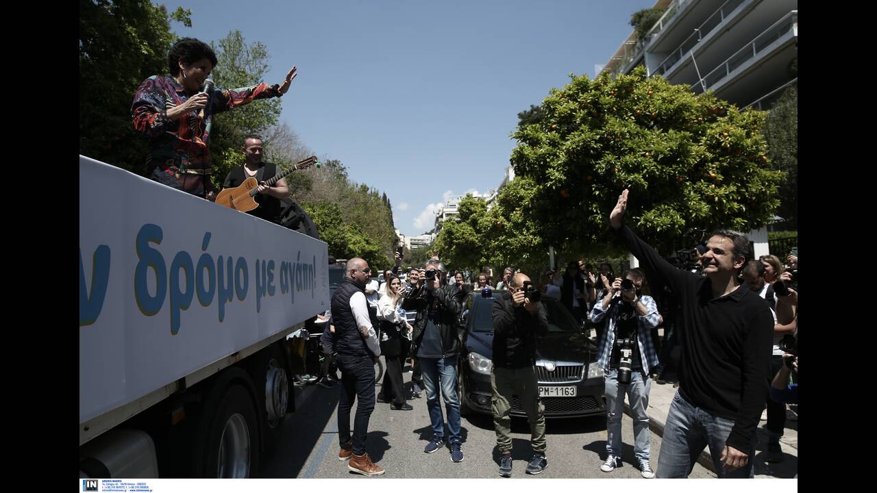 Ο Κ. Μητσοτάκης χειροκροτεί και χορεύει στο on truck concert της Άλκηστης