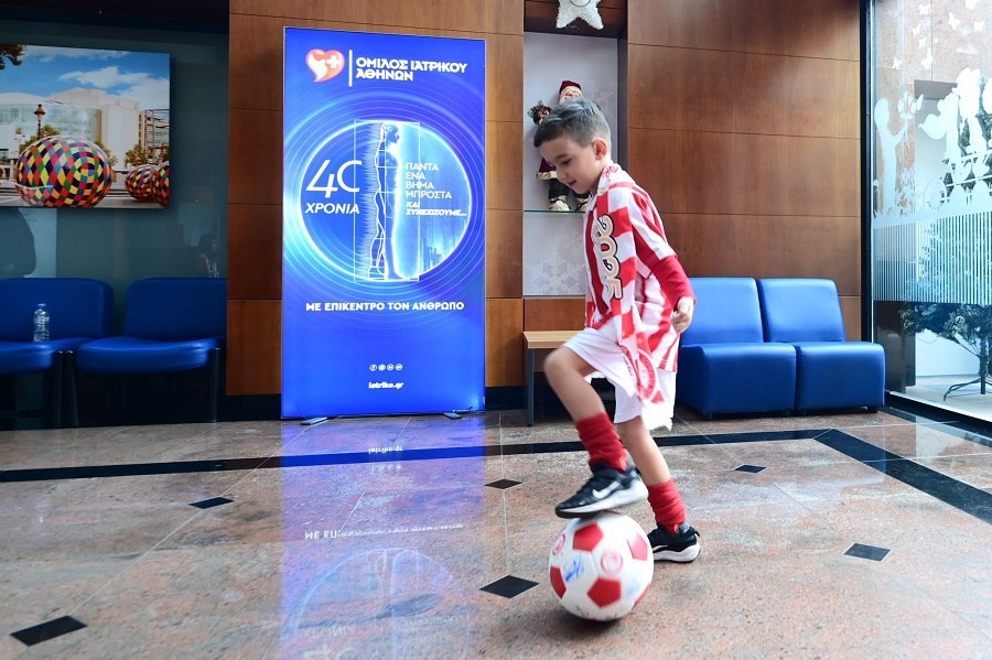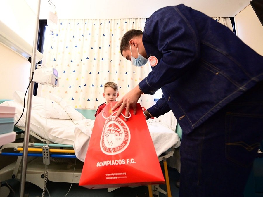 Αντιπροσωπεία των παικτών της ΠΑΕ Ολυμπιακός επισκέφθηκε το Παιδιατρικό Τμήμα του Ιατρικού Κέντρου Αθηνών και μοίρασε δώρα και κράτησε ομόρφη παρέα στους μικρούς ασθενείς που νοσηλεύονται.