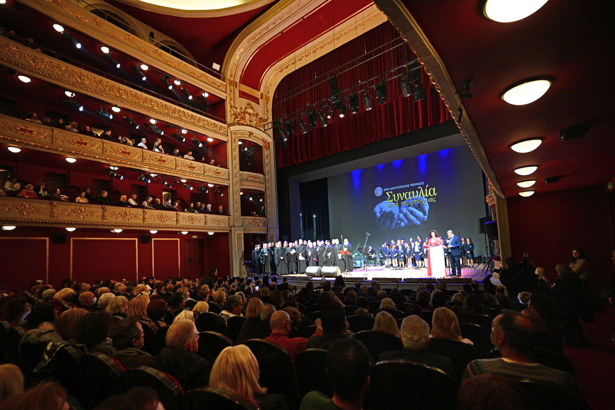 «Αφιερωμένη στην Ειρήνη Μαρινάκη, σύζυγο του αείμνηστου Μιλτιάδη Μαρινάκη και μητέρα του ηγέτη του Ολυμπιακού, κ. Βαγγέλη Μαρινάκη, ήταν με απόφαση του Σεβασμιώτατου Μητροπολίτη Πειραιώς κ. Σεραφείμ, η φιλανθρωπική συναυλία της Ιεράς Μητροπόλεως Πειραιώς, που πραγματοποιήθηκε το βράδυ της Τετάρτης (17/12) στο εμβληματικό Δημοτικό Θέατρο της πόλης, σε συνεργασία με τον Δήμο Πειραιά.