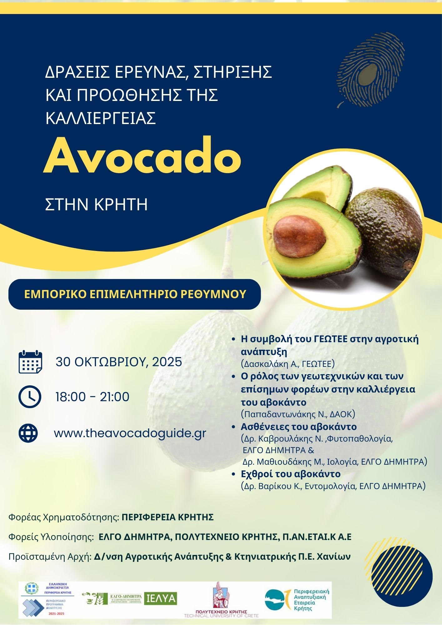 στήριξης και προώθησης της καλλιέργειας του AVOCADO στην Κρήτη» στα πλαίσια του Προγράμματος Δράσης της Περιφέρειας Κρήτης, Άξονα Προτεραιότητας 5.11 «Προώθηση ελληνικών προϊόντων στο εξωτερικό (συμμετοχή σε εκθέσεις, εμπορικές