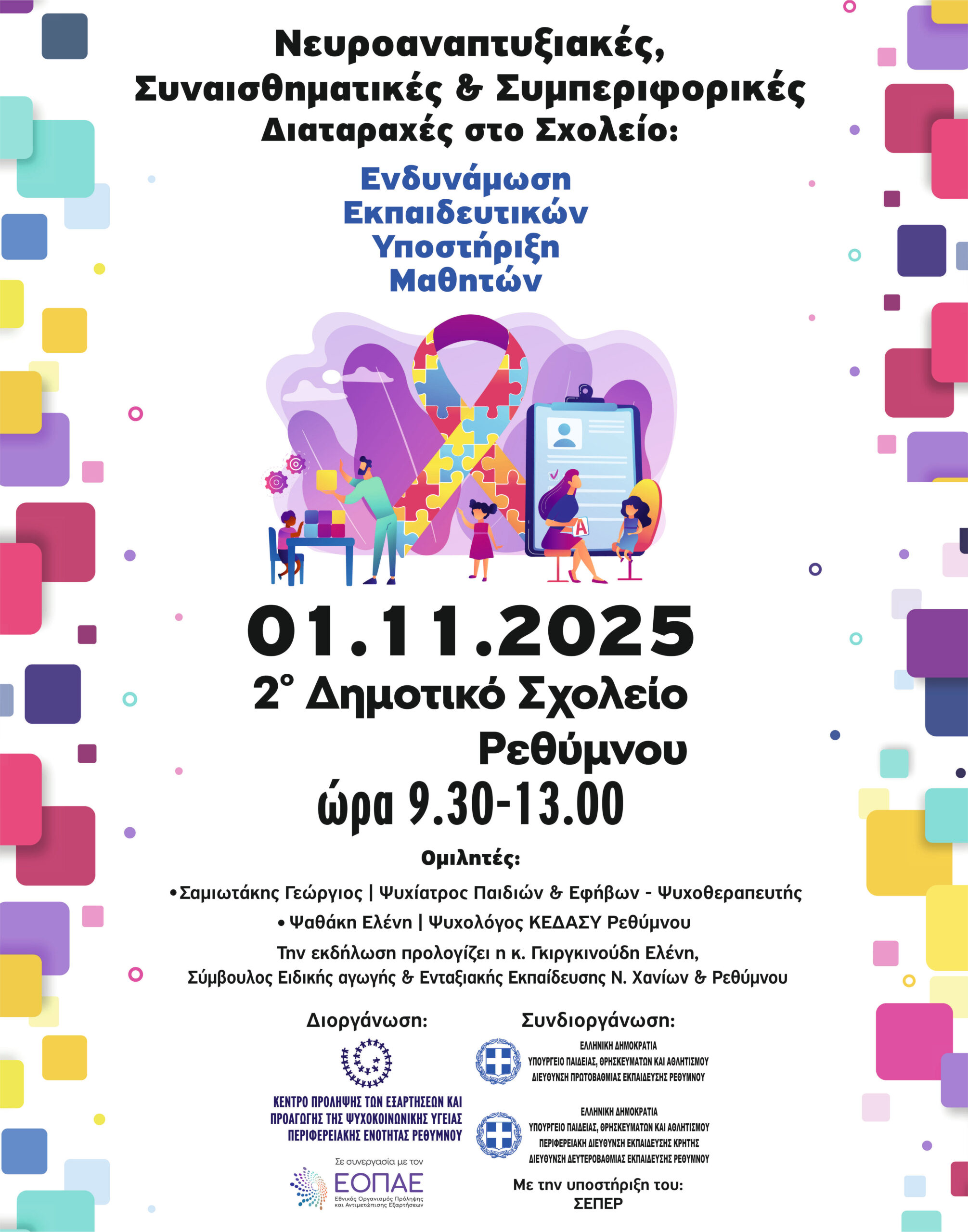 Ημερίδα για Εκπαιδευτικούς με τίτλο «Νευροαναπτυξιακές, Συναισθηματικές και Συμπεριφορικές Διαταραχές στο Σχολείο: