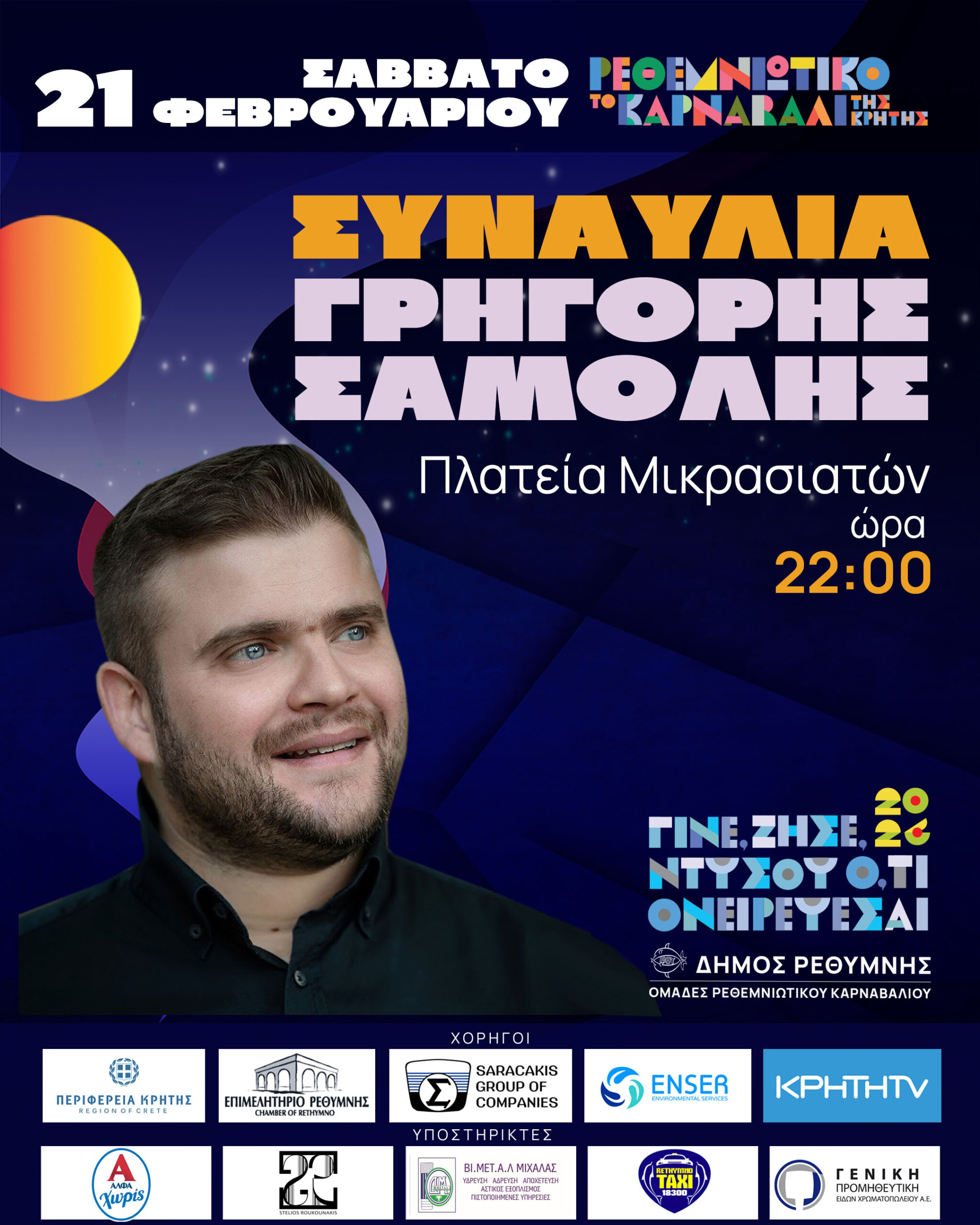 22:00 Συναυλία με τον Γρηγόρη Σαμόλη – Πλατεία Μικρασιατών