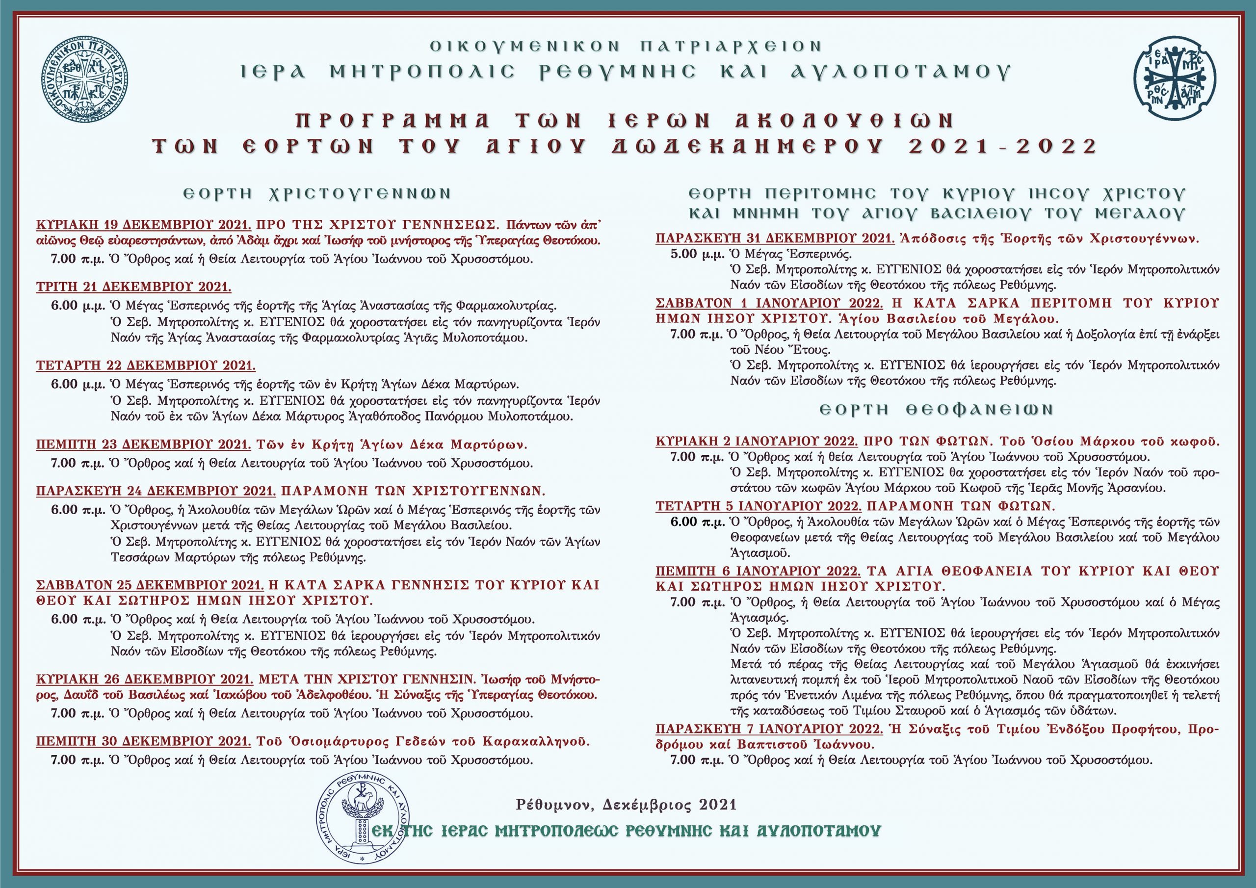 ΤΩΝ ΕΟΡΤΩΝ ΤΟΥ ΑΓΙΟΥ ΔΩΔΕΚΑΗΜΕΡΟΥ 2021-2022