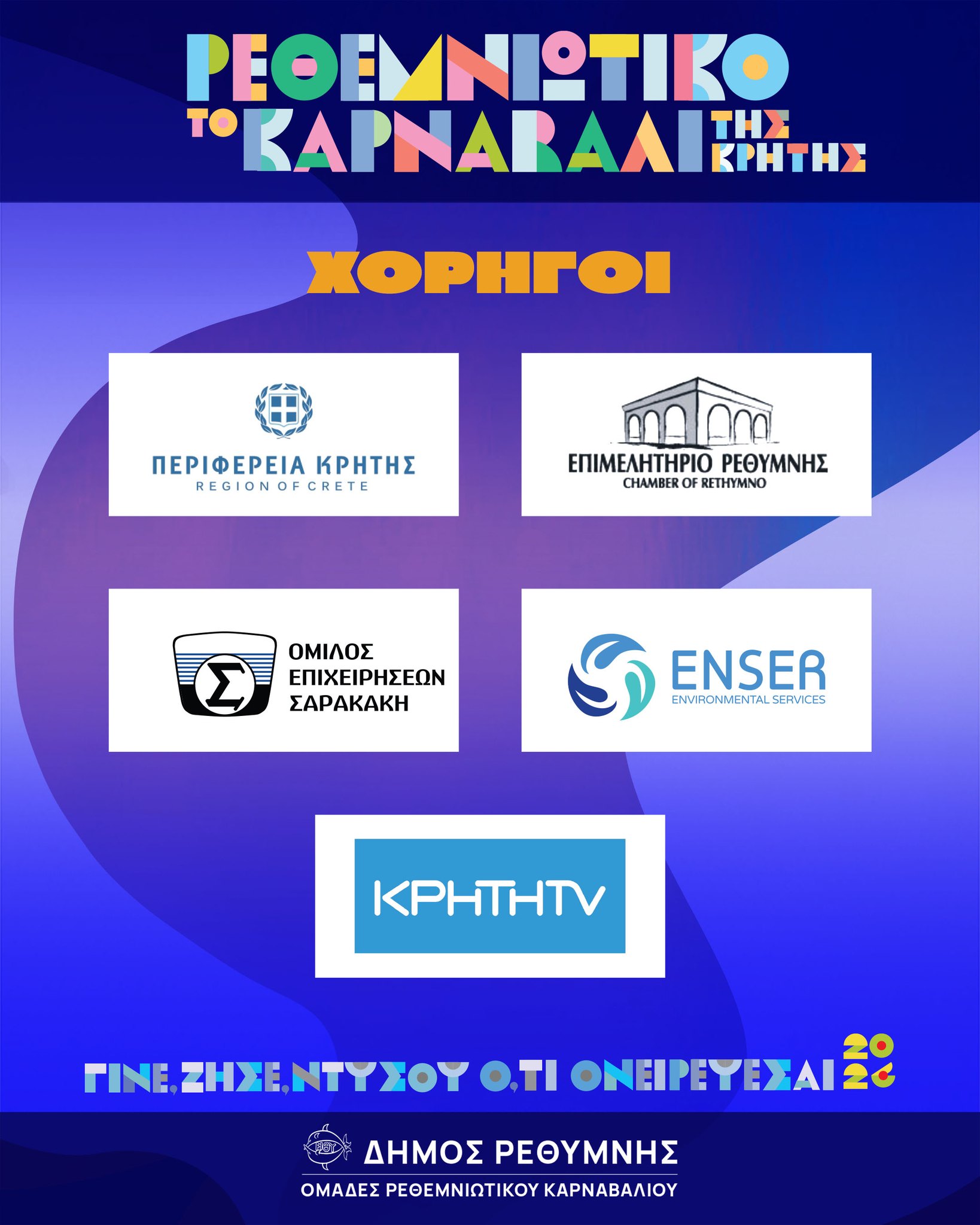 Το Ρεθεμνιώτικο Καρναβάλι χρηματοδοτείται από τον Δήμο Ρεθύμνης και χορηγοί είναι η Περιφέρεια Κρήτης και το Επιμελητήριο Ρεθύμνου.
