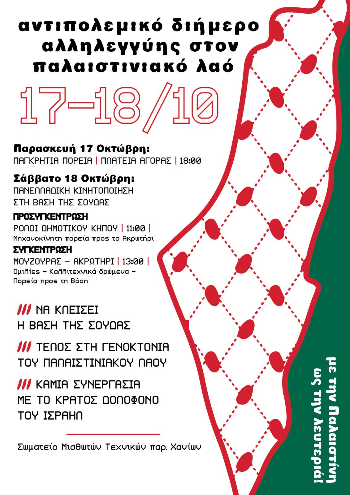 Ολοι και όλες στο διήμερο δράσεων στα Χανιά, 17-18 Οκτωβρίου, ενάντια στη βάση της Σούδας!