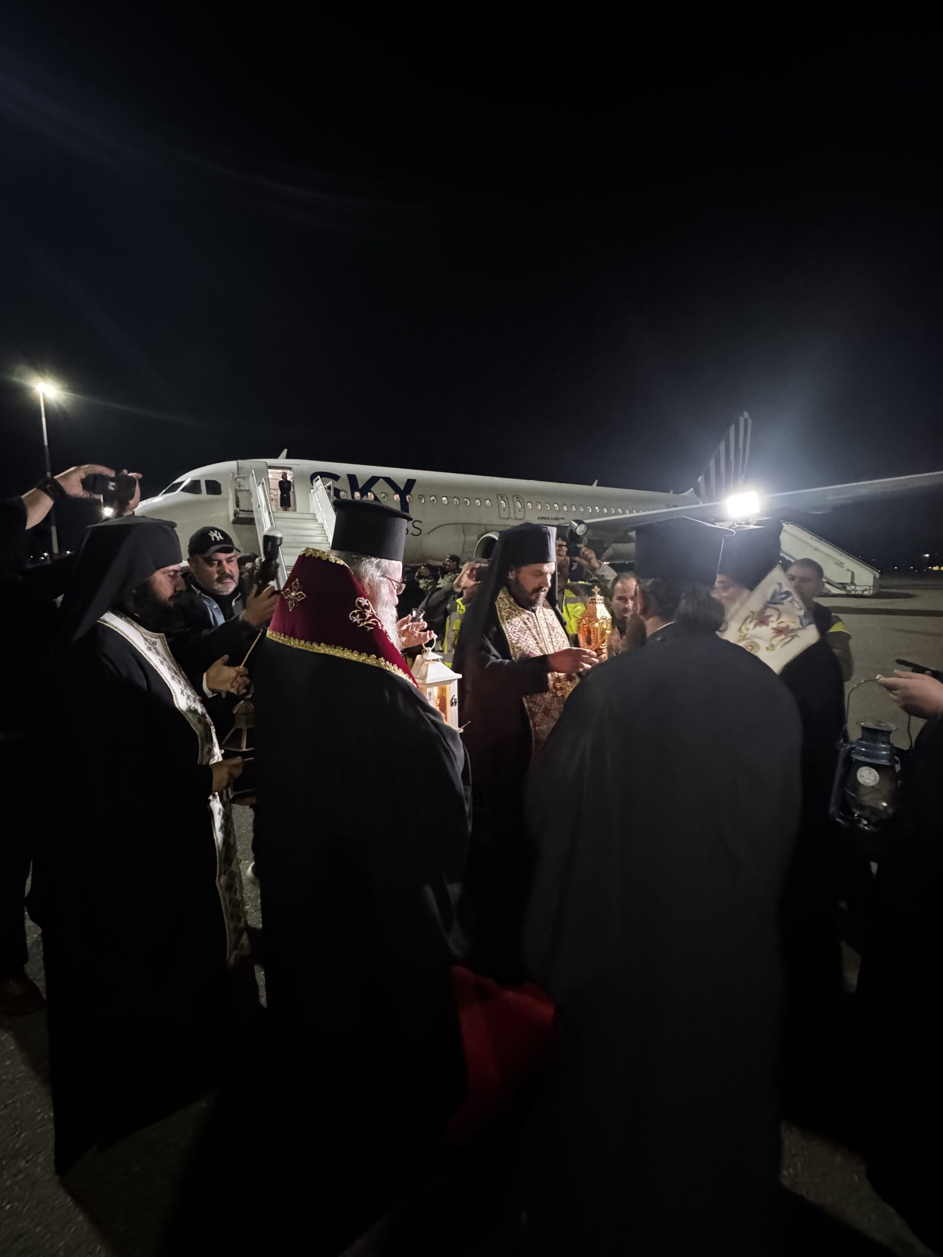 Η SKY express μετέφερε με προγραμματισμένη πτήση το Άγιο Φως στα Χανιά, καθώς και σε άλλους προορισμούς στην ελληνική επικράτεια.