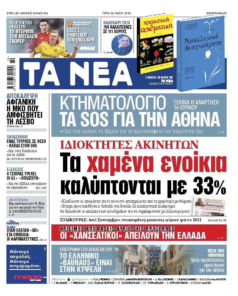 Στα «ΝΕΑ» της Τρίτης: Τα χαμένα ενοίκια καλύπτονται με 33%