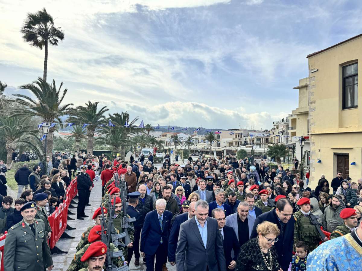 Παρέστησαν ο Υπουργός Κλιματικής Κρίσης και Πολιτικής Προστασίας και Βουλευτής Ρεθύμνου κ. Ιωάννης Κεφαλογιάννης, ο Βουλευτής Ρεθύμνου κ. Εμμανουήλ Χνάρης, η Αντιπεριφερειάρχης Ρεθύμνης κ. Μαίρη Λιονή, ο Δήμαρχος Ρεθύμνης κ. Γεώργιος Μαρινάκης, Αντιδήμαρχοι, Περιφερειακοί και Δημοτικοί Σύμβουλοι, καθώς και οι επικεφαλής του Στρατού και των Σωμάτων Ασφαλείας του τόπου και πλήθος πιστών.
