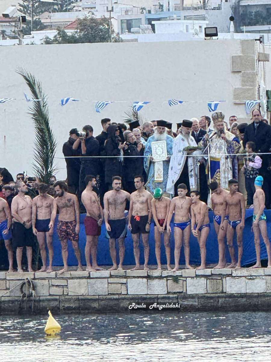 Ο Σεβασμιώτατος συνεχάρη τον νεαρό Ευάγγελο καθώς και όλους τους κολυμβητές και τις κολυμβήτριες που βούτηξαν στα παγωμένα νερά και ευχήθηκε προς όλους τους πιστούς, που κατέκλυσαν τον Ενετικό Λιμένα του Ρεθύμνου, να έχουν πλούσιο τον φωτισμό και τη χάρη του Θεού και να επιλέγουν πάντοτε το φως σε όλες τις στιγμές της ζωής τους, φωτιζόμενοι από το Φως του Χριστού.