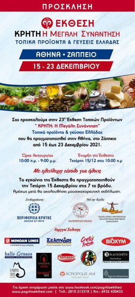 Ξεκίνησαν οι προετοιμασίες της 23ης Έκθεσης Τοπικών Προϊόντων “ΚΡΗΤΗ: Η Μεγάλη Συνάντηση & Τοπικές Γεύσεις Ελλάδας”, που θα πραγματοποιηθεί από 15 έως 23 Δεκεμβρίου 2021, στην Αθήνα, στο Ζάππειο.