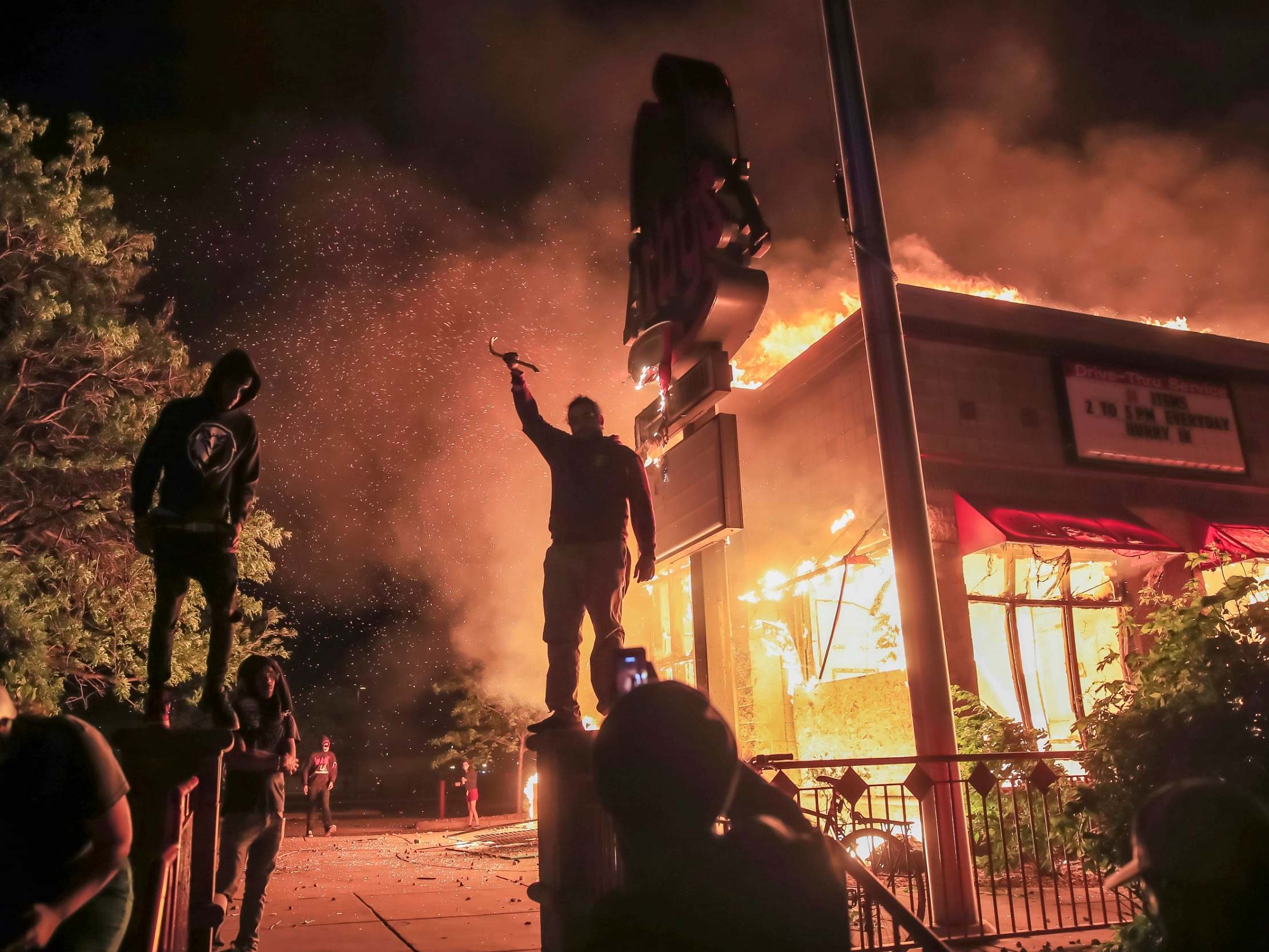 Κάποιοι πέταξαν μπουκάλια και πυροτεχνήματα σε αστυνομικούς. Άλλοι έκαψαν κτίρια και περιπολικά, λεηλάτησαν καταστήματα, βανδάλισαν περιουσίες.