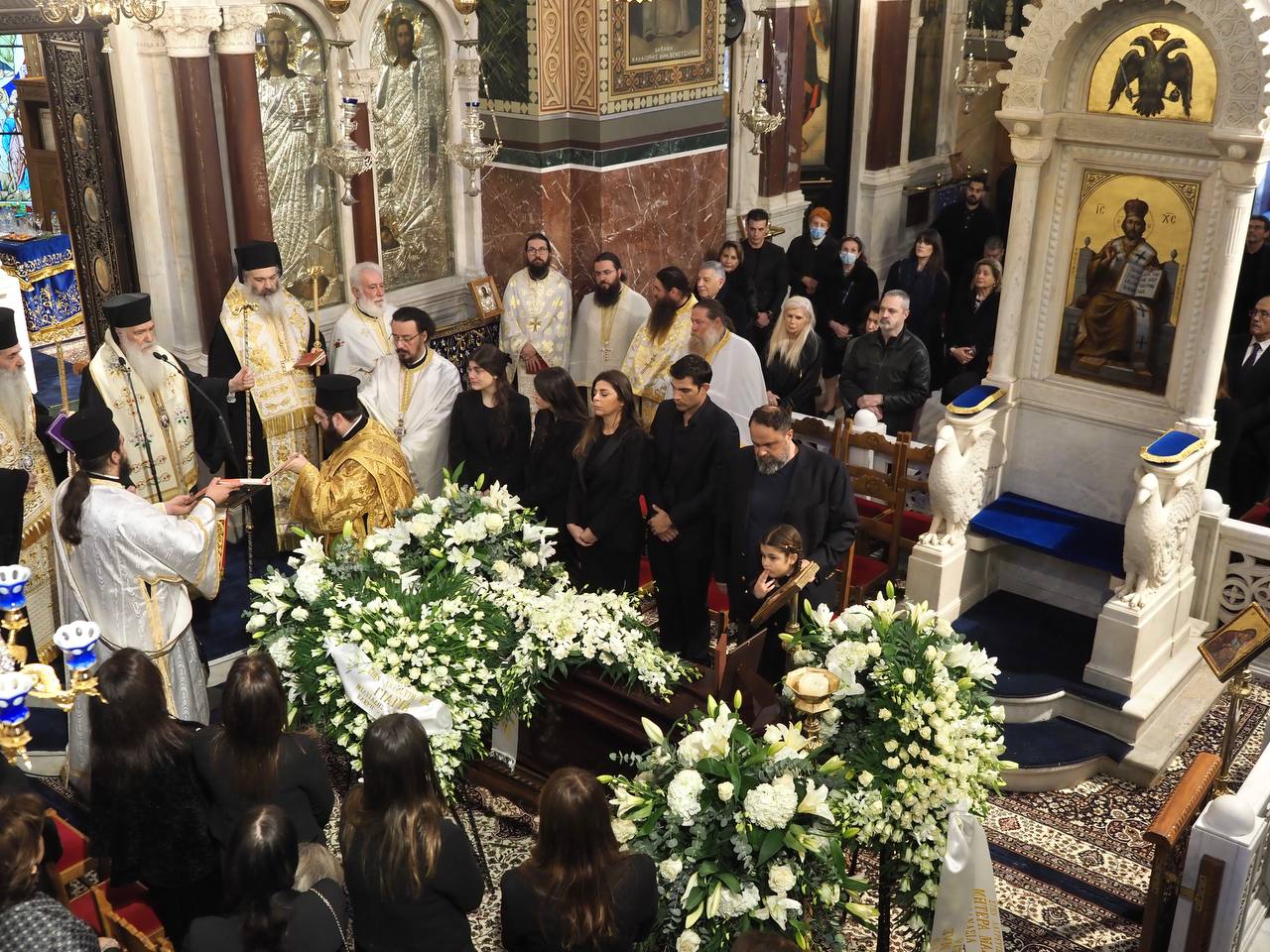 Πλήθος κόσμου αποχαιρέτησε με συγκίνηση την Ειρήνη Μαρινάκη, σύζυγο του Μιλτιάδη Μαρινάκη και μητέρα του Βαγγέλη Μαρινάκη, στον Ιερό Ναό του Αγίου Νικολάου Πειραιά, όπου και τελέστηκε η Εξόδιος Ακολουθία.